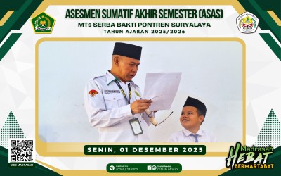 Asesmen Sumatif Akhir Semester (ASAS) Tahun Ajaran 2025/2026 Hari ke-1 di MTs Serba Bakti Pondok Pondok Pesantren Suryalaya pada Hari Senin, (01/12/2025)