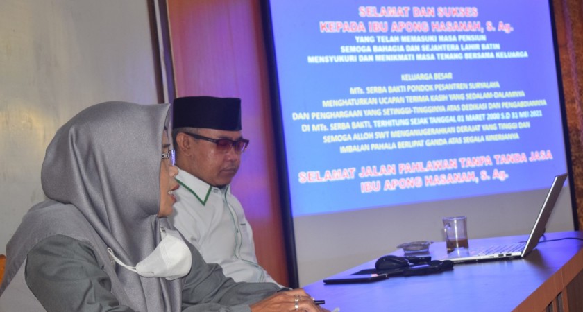 Senin (31/5/2021). Setelah mengabdikan diri kurang lebih selama 18 Tahun di MTs Serba Bakti Suryalaya, Hj. Apong Hasanah S.Ag. berpamitan kepada seluruh GTK. Pasalnya ia telah purna bakti sebagai ASN tertanggal (SK) 1 Mei 2021 lalu.