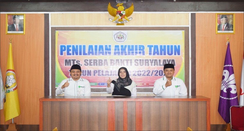 Suryalaya - Di hari ke dua pelaksanaan Penilaian Akhir Tahun (PAT), Pengawas Pembina Kantor Kementerian Agama Kabupaten Tasikmalaya, Mimin Aminah, M.Pd. melaksanakan monitoring pelaksanaan Penilaian Akhir Tahun (PAT) Tahun Pelajaran 2022/2023 di MTs Serba Bakti Suryalaya (Selasa, 30/5/2023). Usai diterima di ruang Kepala Madrasah, Pengawas langsung memeriksa Program Kerja PAT dilanjutkan dengan peninjauan ke ruang PAT didampingi oleh Wakil Kepala Bidang Kurikulum, Irma Sumarni, S.Pd.I. dan Ketua PAT, Rian Syaiful Anwar, S.Pd.